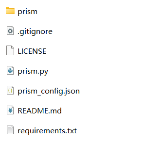 3. 将 prism 文件夹、prism.py、prism_config.json、requirements.txt 文件复制到服务器根目录下。